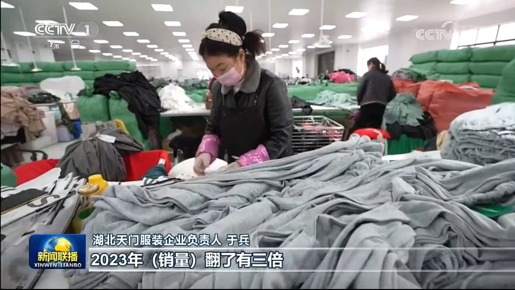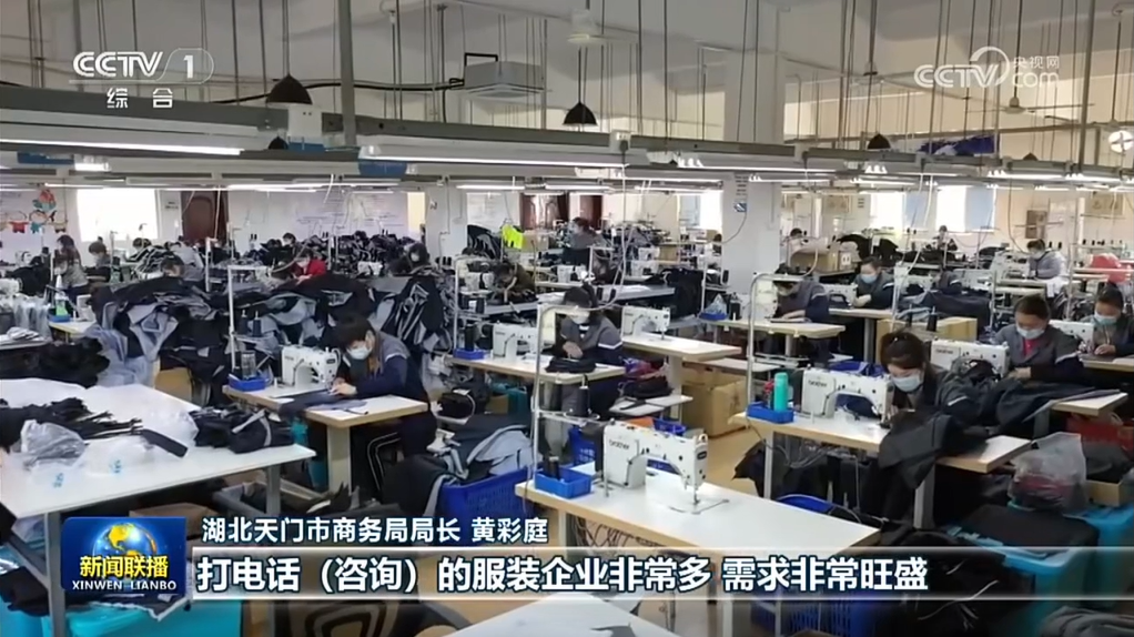 央視記者隨機(jī)走訪其中一家服裝廠湖北天門服裝廠采訪時(shí),工人們正在熱火朝天地趕制新一批即將發(fā)往海外的訂單,據(jù)得知該工廠開(kāi)設(shè)不到兩年為因?qū)缇畴娚踢@波”潑天的富貴“,擴(kuò)大生產(chǎn)力,已開(kāi)設(shè)了 25 個(gè)分廠,其中有 17 個(gè)分廠投產(chǎn)使用,每天產(chǎn)量高達(dá) 7000 件,還是不能滿足眼下訂單出貨量。