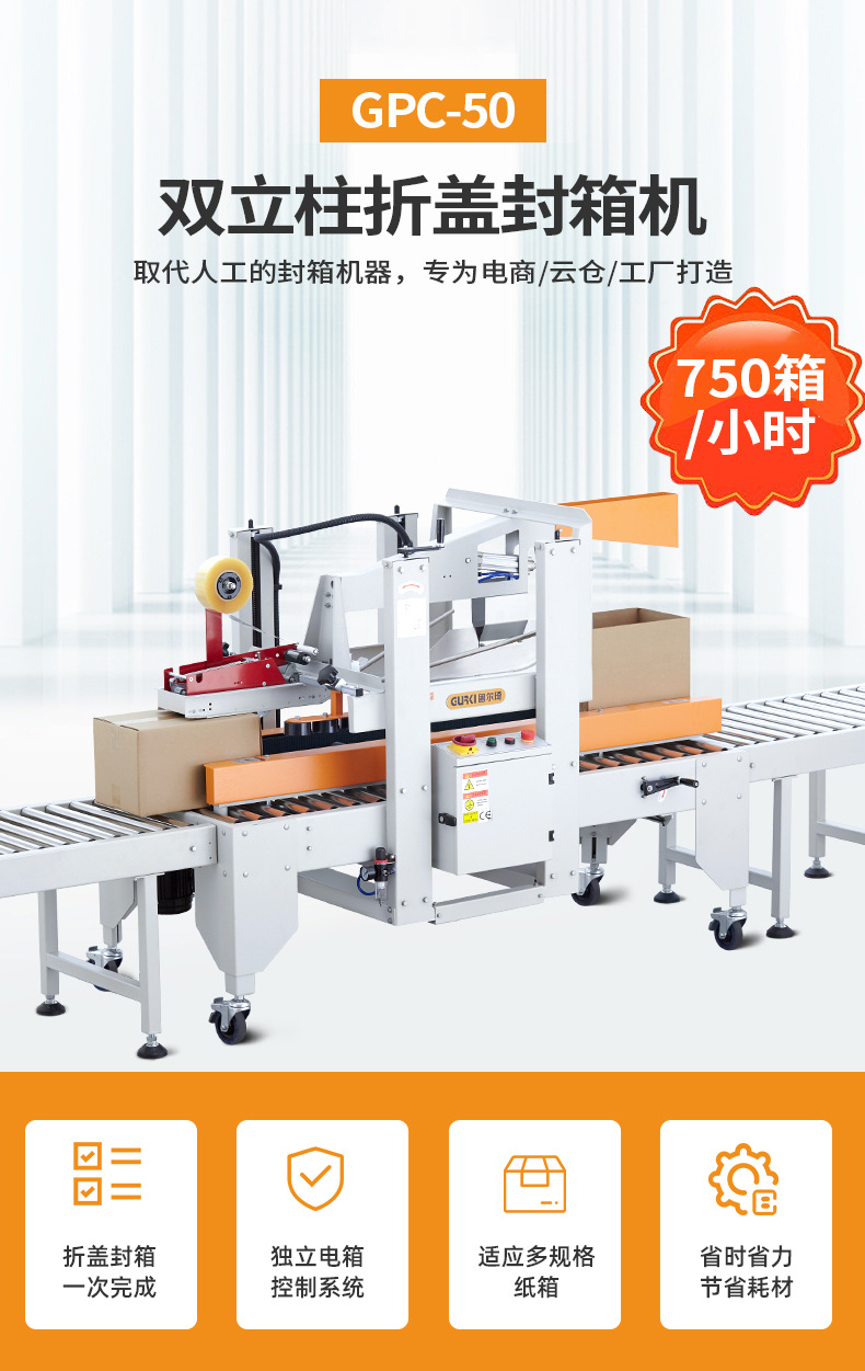 雙立柱折蓋封箱機(jī)是在單立柱折蓋封箱機(jī)的基礎(chǔ)上進(jìn)行優(yōu)化的產(chǎn)品,雙立柱明顯體現(xiàn)了機(jī)器的牢固性、穩(wěn)定性,配有獨(dú)立電箱控制系統(tǒng),提高安全系數(shù),同時(shí)雙立柱還可根據(jù)客戶產(chǎn)品特性增加上部驅(qū)動(dòng)系統(tǒng)。該款封箱機(jī)廣泛應(yīng)用于食品、醫(yī)藥、飲料、煙草、日化、汽車、線纜、電子等行業(yè)。