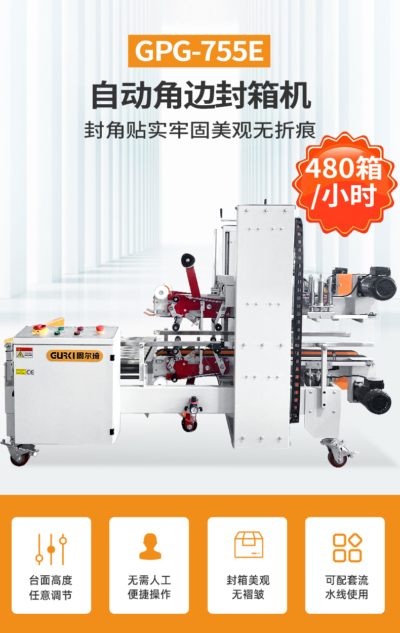 自動(dòng)四角邊封箱機(jī)是紙箱經(jīng)前段封箱機(jī)中間上下封口后,進(jìn)入90度轉(zhuǎn)角機(jī)構(gòu),光電感應(yīng)后由推箱板推入角邊封箱機(jī),同時(shí)封紙箱上下四個(gè)角邊,封箱效率快,兩排毛刷同時(shí)撫平膠帶,使其緊緊貼住紙箱,折角無褶皺,美觀牢固,適合對(duì)外包裝要求比教高的客戶和廠家。特別是出口產(chǎn)品和食品行業(yè),廣泛應(yīng)用于食品、醫(yī)藥、飲料、煙草、日化、汽車、線纜、電子等行業(yè)。