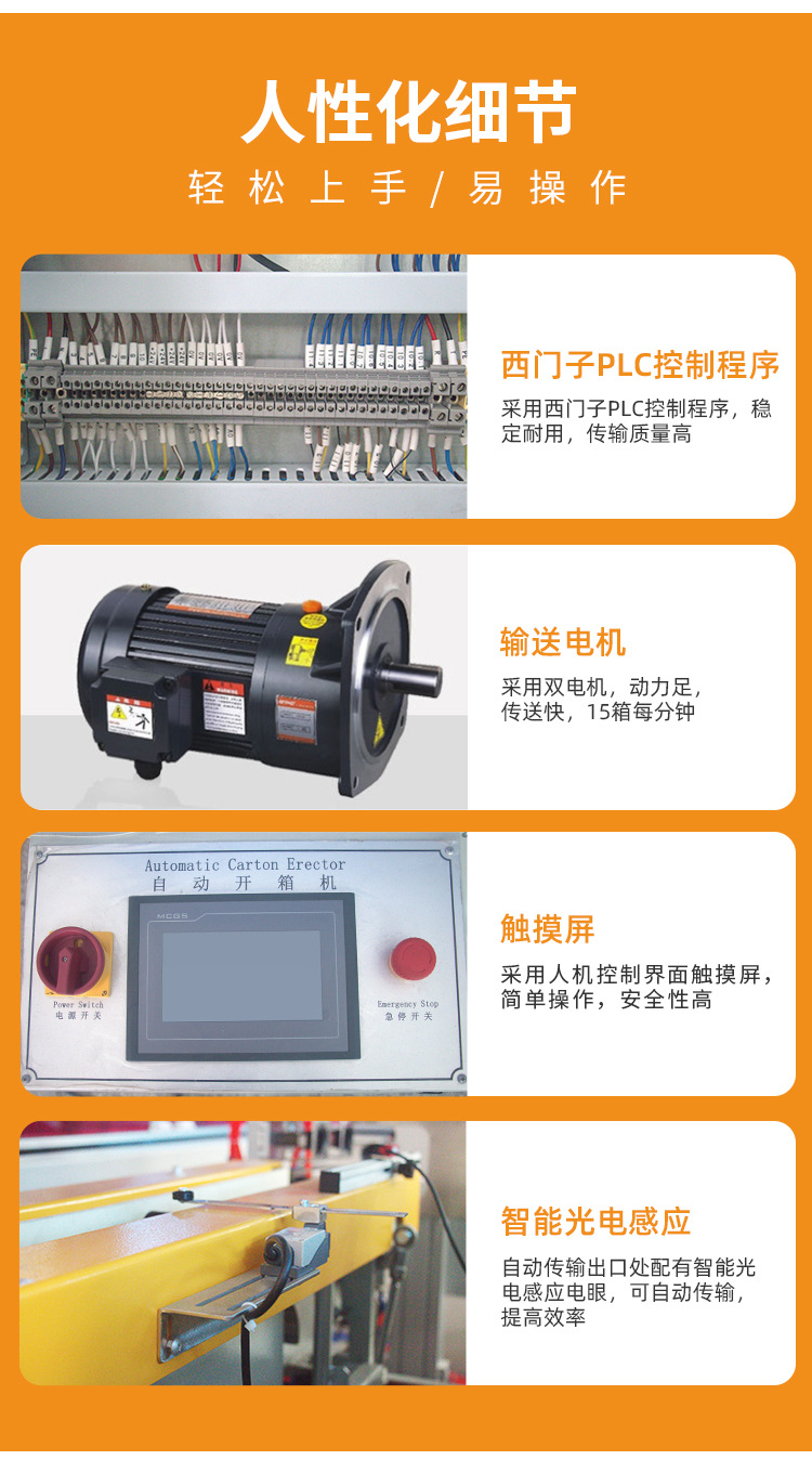 電商開箱機專門為電商行業(yè)打造的紙箱快速成型的機器,每分鐘滿足15箱的需求,能夠解決電商旺季打包數(shù)量多,包裝慢的問題,同時它不需要任何維護,只要通電就可以立即使用,可以配套稱重、貼標(biāo)、掃碼等設(shè)備使用,同時可以接入倉儲系統(tǒng),完成整一個倉儲出貨盤點。