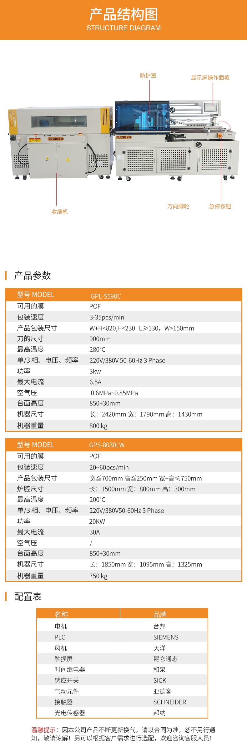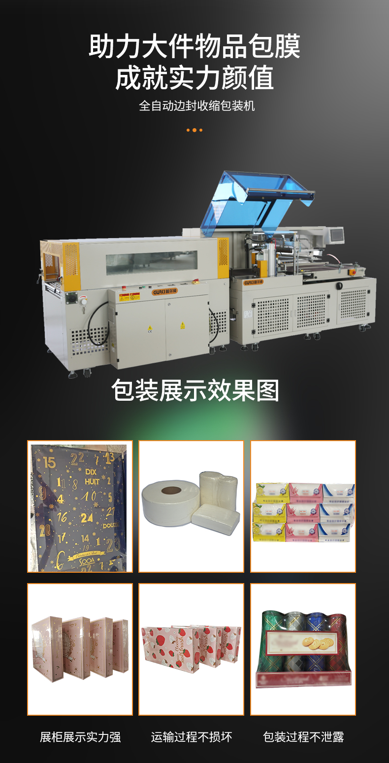 全自動邊封收縮包裝機是一款非標定制產(chǎn)品,整機配有PLC程序系統(tǒng),采用光電對產(chǎn)品進行自動偵測,根據(jù)產(chǎn)品自動調(diào)節(jié)送料長度,自動對產(chǎn)品進行封切收縮,檢測開關控制電機自動卷收廢膜。從而實現(xiàn)無人化自動包膜的特點,該機工作效率高,針對不同大小的產(chǎn)品,速度為每分鐘1-20件,該款封切收縮包裝機也適用于印刷、彩盒、醫(yī)藥、日化、汽配、食品等行業(yè)。