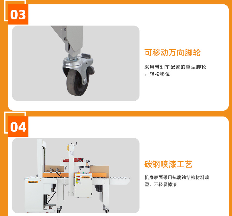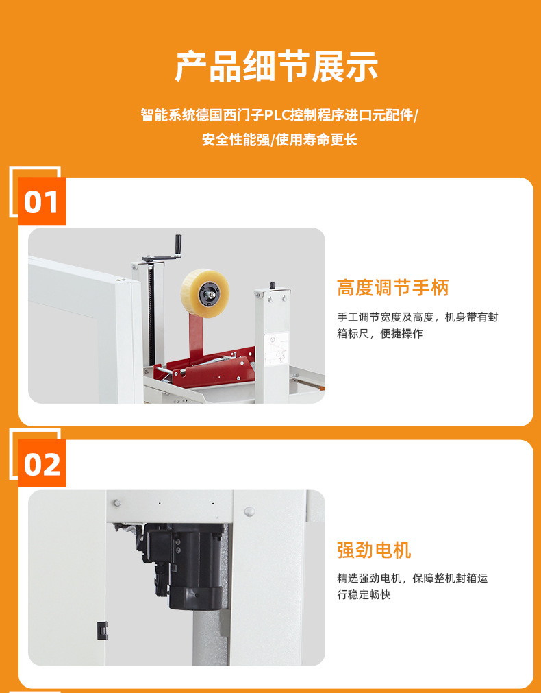 電商封箱機(jī)配套快遞貼面單機(jī),封箱貼面單效率日發(fā)8000+。具備一鍵式傻瓜操作,自動(dòng)化封箱貼面單一步完成,保養(yǎng)簡(jiǎn)單,穩(wěn)定性強(qiáng)的特點(diǎn)