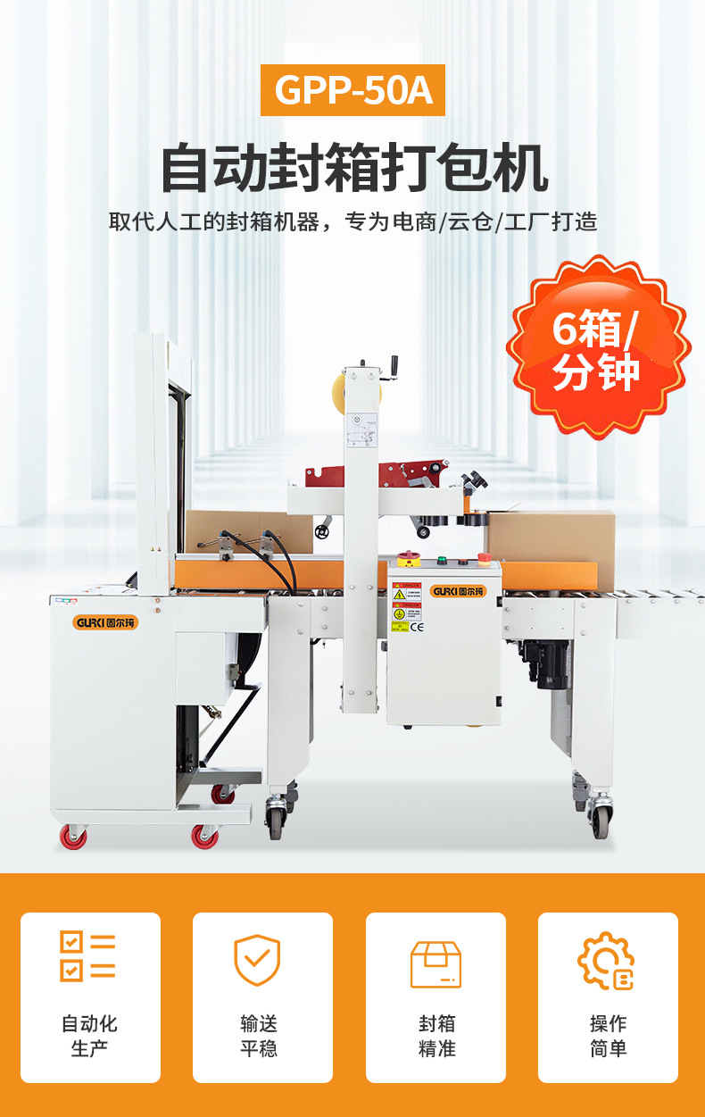 自動(dòng)封箱打包機(jī)GPP-50A的配套,使全自動(dòng)打包機(jī)和自動(dòng)封箱機(jī)為一體的包裝機(jī),可配套自動(dòng)化包裝流水線使用,自動(dòng)上下封膠帶,多道困扎,實(shí) 現(xiàn)后道無(wú)人化包裝;工作效率高,更好滿足新老顧客的需求。廣泛適應(yīng)于印刷、彩繪、賀卡、相冊(cè)、相框、醫(yī)藥、電子、日化、 化妝品等大批量生產(chǎn)的行業(yè)。