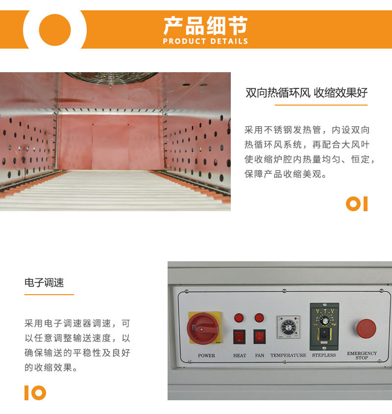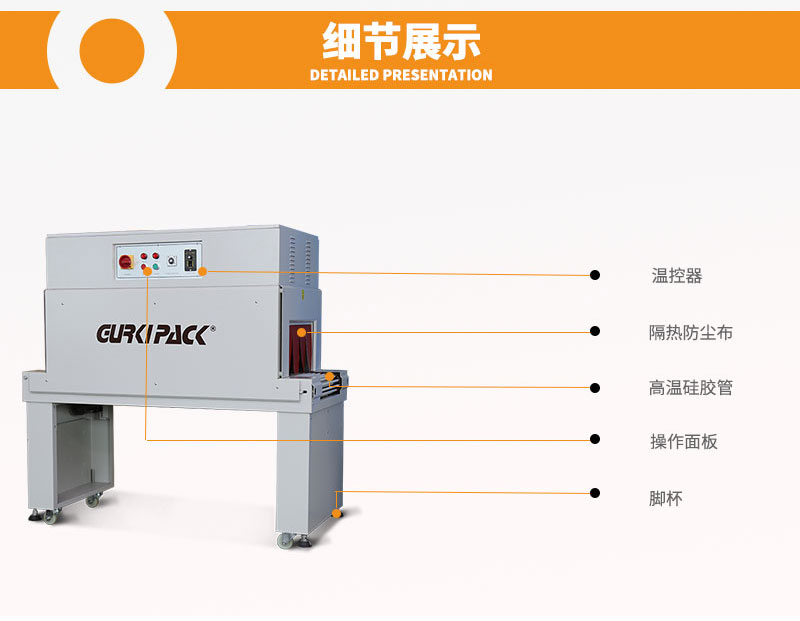 恒溫收縮包裝機(jī)主要是用收縮薄膜對(duì)產(chǎn)品進(jìn)行外包裝,提高品牌形象程度,增加美觀及價(jià)值感。該款恒溫收機(jī)采用內(nèi)循環(huán)風(fēng)道設(shè)計(jì),保證爐內(nèi)溫度均勻;不銹鋼發(fā)熱管,發(fā)熱穩(wěn)定,使用壽命長(zhǎng);輸送滾軸的外部包耐高溫硅膠管,耐磨耐高溫,使用壽命長(zhǎng)。耐高溫隔熱簾布,大大減少熱能損耗,可自動(dòng)降溫關(guān)機(jī),無需人工等待關(guān)機(jī)。該款收縮包裝機(jī)適用于飲料、啤酒、礦泉水、易拉罐、玻璃瓶有紙托、紙箱等集合或單一收縮包裝。