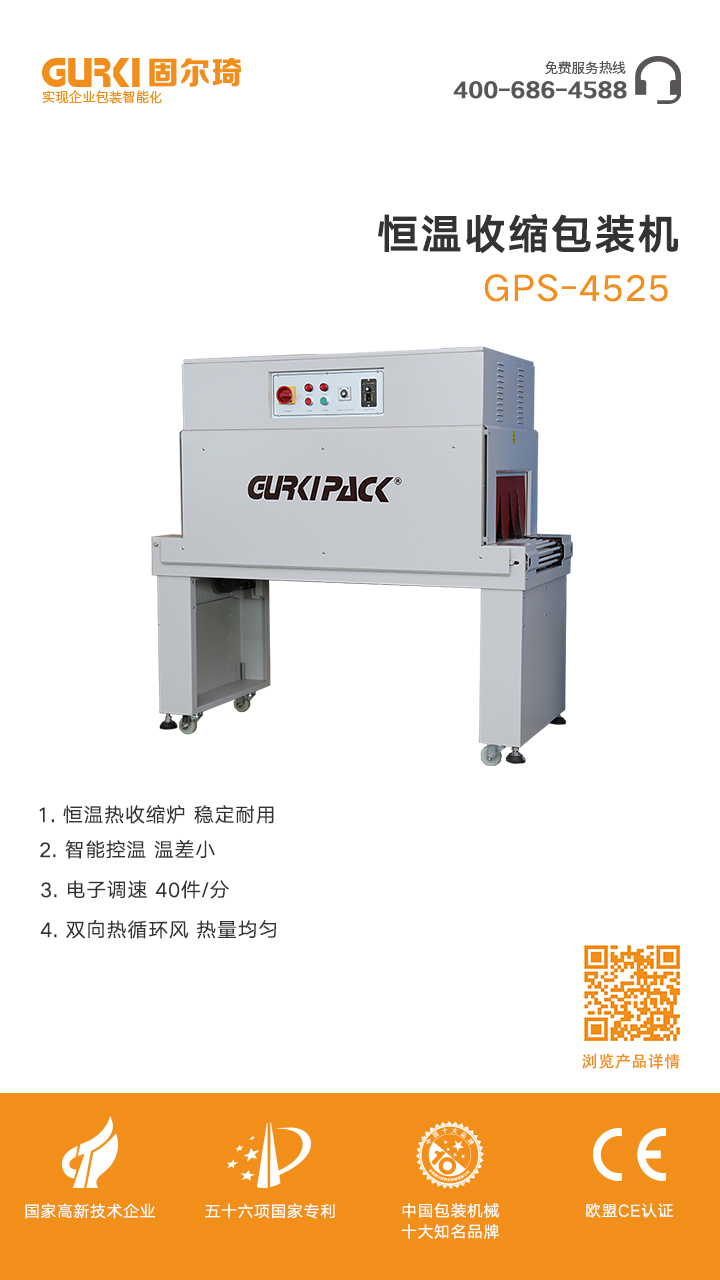 恒溫收縮包裝機主要是用收縮薄膜對產(chǎn)品進行外包裝,提高品牌形象程度,增加美觀及價值感。該款恒溫收機采用內(nèi)循環(huán)風道設計,保證爐內(nèi)溫度均勻;不銹鋼發(fā)熱管,發(fā)熱穩(wěn)定,使用壽命長;輸送滾軸的外部包耐高溫硅膠管,耐磨耐高溫,使用壽命長。耐高溫隔熱簾布,大大減少熱能損耗,可自動降溫關(guān)機,無需人工等待關(guān)機。該款收縮包裝機適用于飲料、啤酒、礦泉水、易拉罐、玻璃瓶有紙托、紙箱等集合或單一收縮包裝。